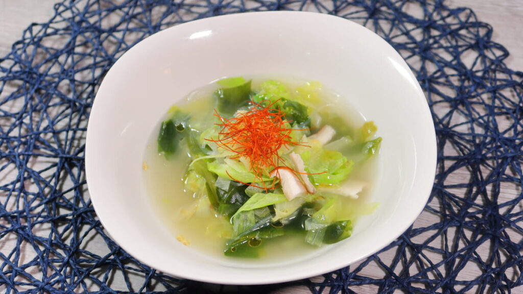 【レタスとわかめの中華風スープレシピ】椎茸の風味にレタスのシャキシャキ感とわかめの旨味がよく合う【92kcal】